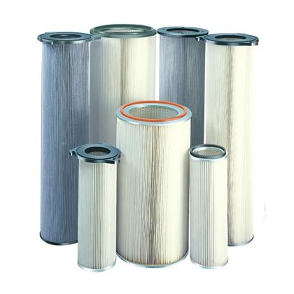 Pleated spun bonded polyester filter media is placed in a cylindrical configuration with support of metal core & encapsulated with metal end caps to form a pleated dust collection cartridge. The end caps are configured to mount as clean side or dirt side fitment. In case of metal caps these cartridges are supported with soft sponge rubber sealing to ensure positive sealing of filter while fitment.